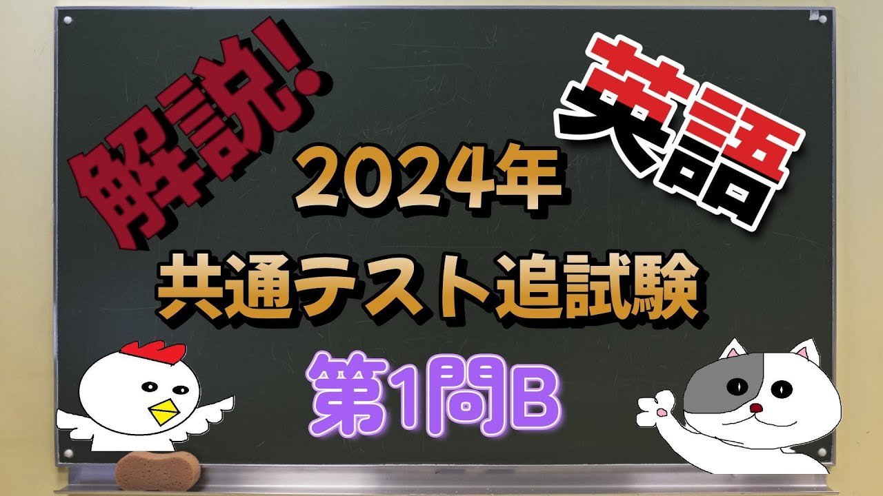 2024年度の大学入学共通テスト追試験英語第1問Bの解説をしています。疑問点が残らないよう、解き方の手順も踏まえて一問一問どこよりも丁寧に説明します。