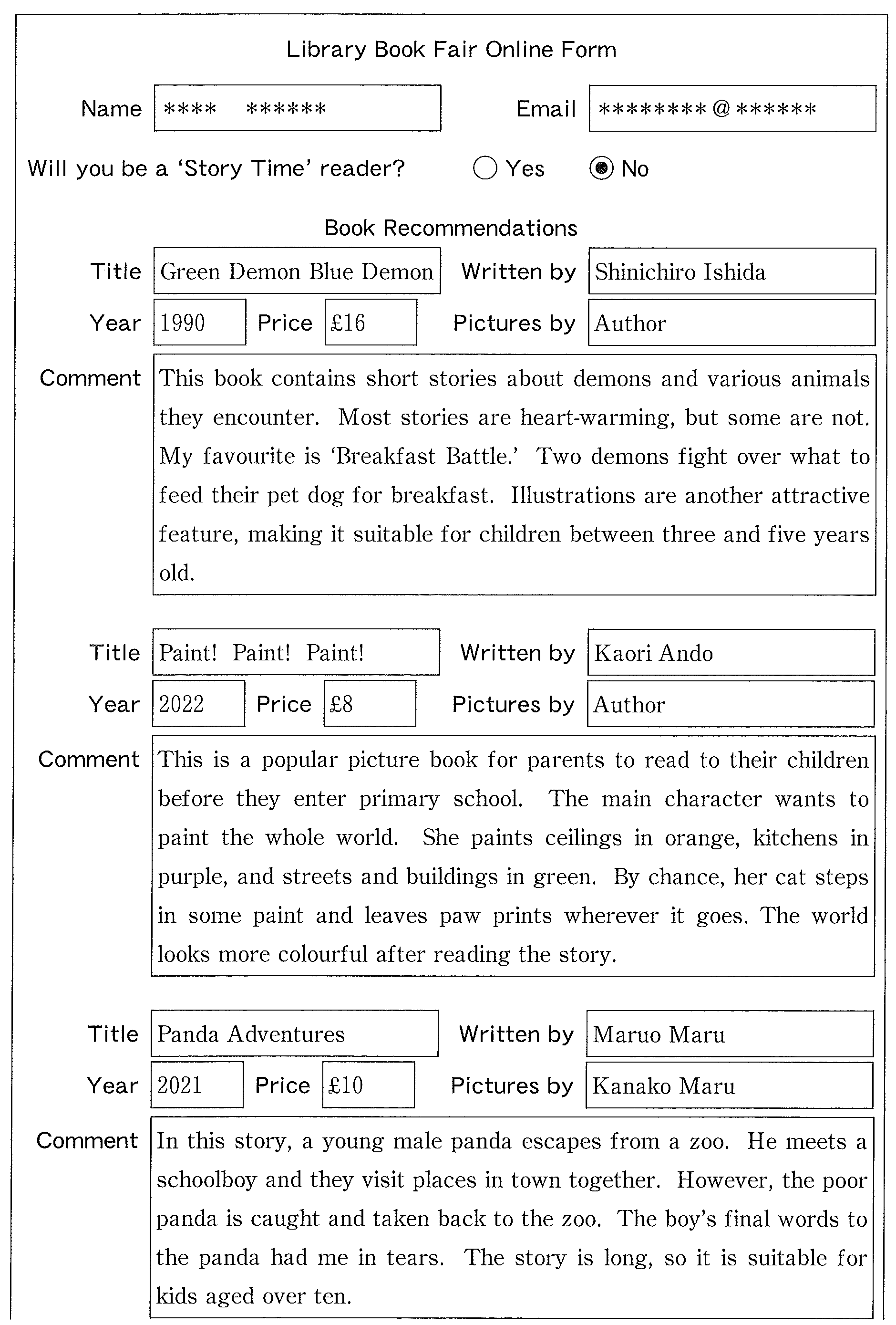 You are studying in the UK. In the town library, you found the following leaflet. After reading it, you submitted a form and received an email from the library.