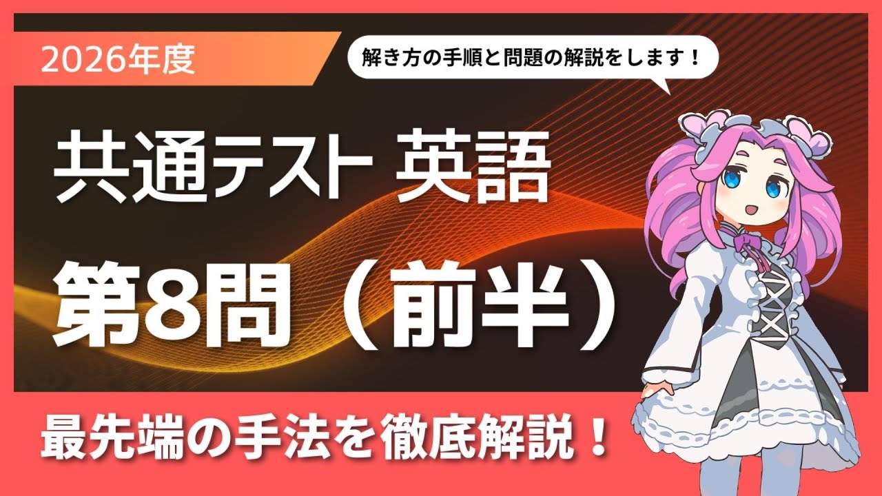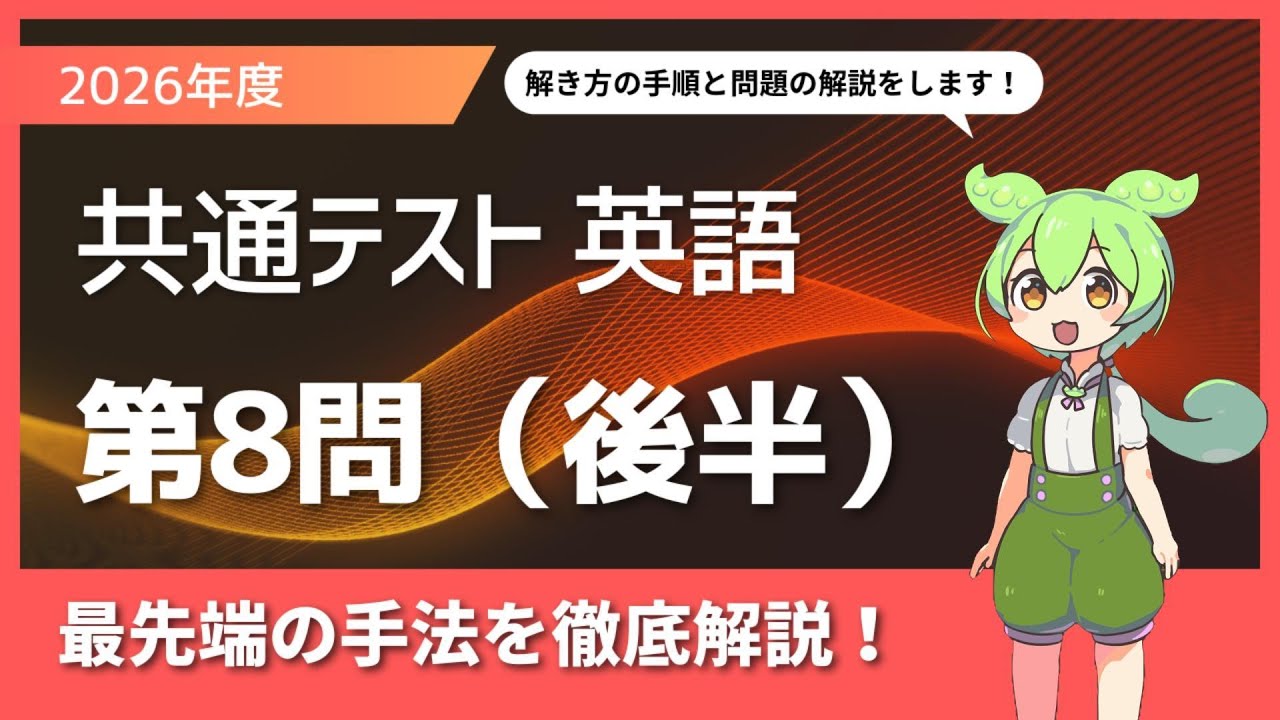 2026年度の大学入学共通テスト英語第8問の解説をしています。疑問点が残らないよう、解き方の手順も踏まえて一問一問どこよりも丁寧に説明します。